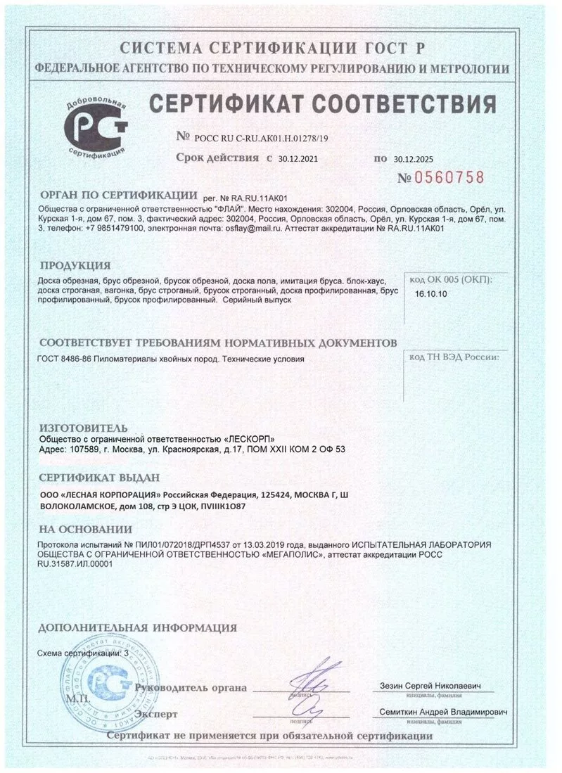 Подтвержденное сертификатами и действующими ГОСТ